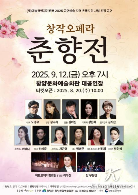 함양문화예술회관은 한국 최초의 창작 오페라인 현제명의 ‘춘향전’ 공연을 오는 9월 12일(금) 오후 7시, 대공연장에서 개최한다.