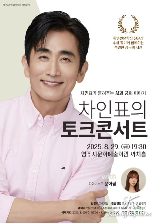 영주시문화예술회관은 오는 8월 29일(금) 오후 7시 30분 까치홀에서 2025 기획공연 「차인표의 토크 콘서트(with 문아람)」를 개최한다고 밝혔다.