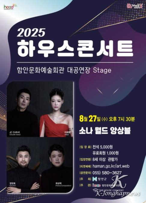 함안군은 2013년부터 꾸준히 이어온 ‘하우스콘서트’를 8월 27일 오후 7시 30분, 함안문화예술회관 대공연장에서 개최한다. 이번 공연은 매월 마지막 주 ‘문화가 있는 날’ 프로그램의 하나로 진행된다.