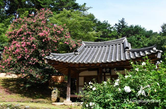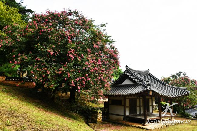 담양 죽림재에 백일홍이 활짝 피어 여름 정취 속에 붉은 꽃물결이 장관을 이루고 있다.