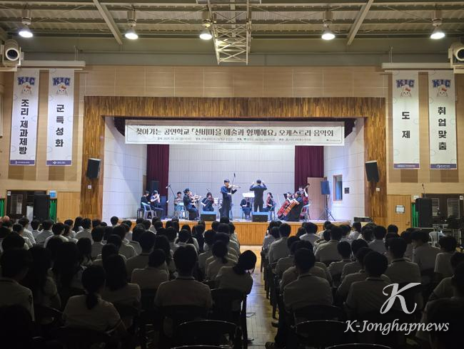 8월 29일 한국국제조리고등학교에서 진행되고 있는 찾아가는 오케스트라 음악회 진행 모습(영주시 제공)