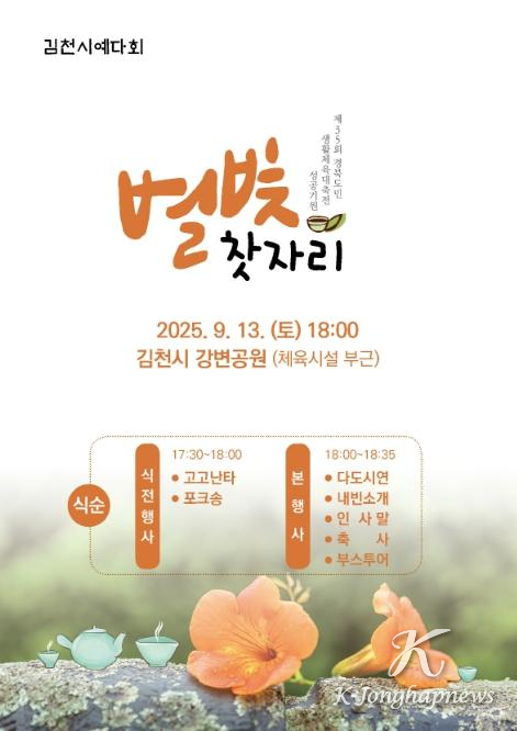 김천시 강변공원 일원에서 오는 9월 13일(토) 저녁 6시부터 9시까지, 경북도민생활체육대축전의 성공을 기원하는 특별한 문화행사 「별빛찻자리」가 열린다.