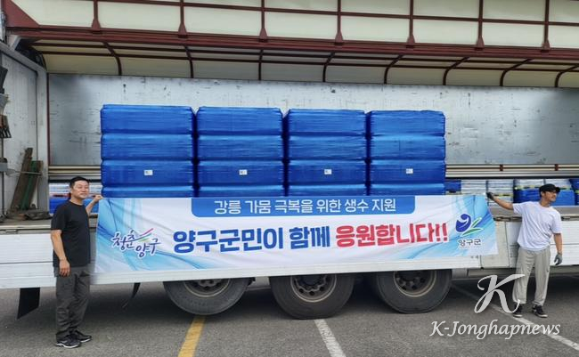 양구군은 유례없는 가뭄으로 일상 생활에 어려움을 겪고 있는 강릉시에 지난 12일 생수를 긴급 지원했다.