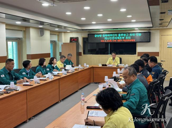 광양시는 9월 23일 오후 3시, 시청 재난안전상황실에서 광양항 동측배후단지 내 물류창고 화재 완진에 따른 후속대책을 논의하기 위해 재난안전대책본부 회의를 개최했다.