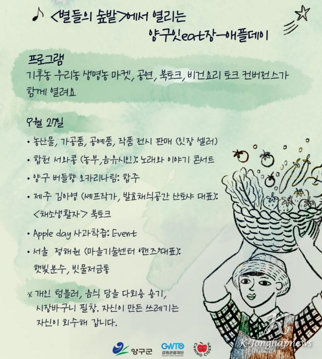 전금순 자치행정과장은 “유휴공간을 생태문화 공간으로 되살려 주민과 방문객이 함께 어울리는 <양구잇eat장>은 양구만의 차별화된 로컬문화 콘텐츠”라며, “지역 농산물과 생태문화를 결합해 양구가 지속가능한 농촌·관광 거점으로 성장할 수 있도록 적극 지원하겠다”고 말했다.