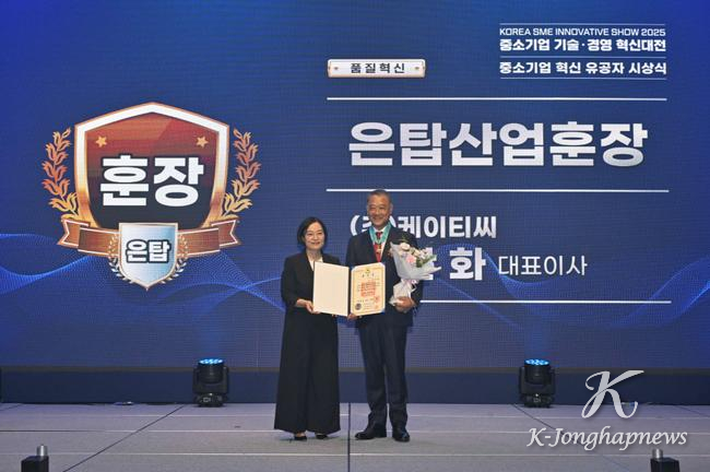 경상남도 함양군 휴천면 출신 향우인 박찬화 ㈜유아이엘 및 ㈜케이티씨 대표이사가 지난 9월 4일 제주에서 열린 ‘2025 중소기업 기술·경영혁신대전’에서 품질 혁신 부문 은탑산업훈장을 수상했다.