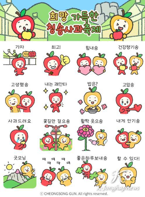 청송군, 청송사과축제 앞두고 청이·송이 이모티콘 무료 배부