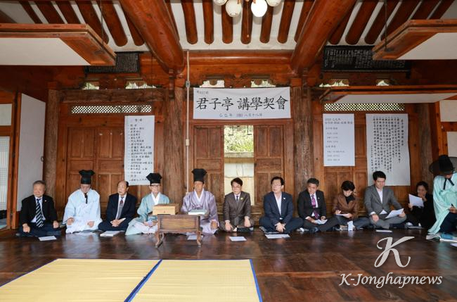 107회를 맞이한 군자정 강학계는 고성이씨 청도 입향조인 모헌공 이육 선생의 덕을 기리고, 지역의 문풍을 계승하고자 1919년 조직되었으며, 매년 음력 8월 18일에 문중 주최로 열린다.