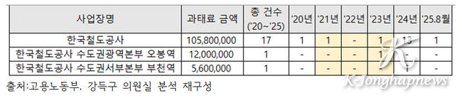 • - 한국철도공사, 20년 이후 19회 위반, 거의 매년 상습적으로 위반 반복