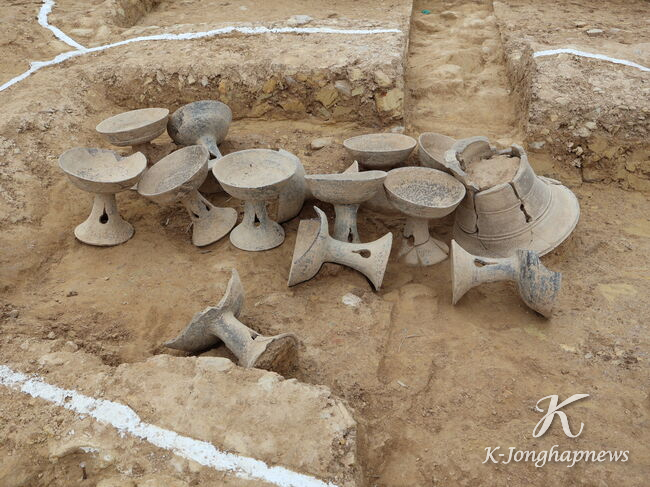 불꽃무늬굽다리접시 출토 모습