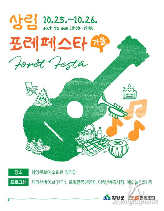 축제를 주관하는 빈둥협동조합 김찬두 대표는 “이번 2025 상림 포레페스타 <가을>은 모든 연령대가 함께 소통하고 즐길 수 있는 음악 공연과 체험 프로그램이 준비되었다”라며, “온 가족이 직접 참여하여 축제를 즐기시길 바란다”라고 전했다.