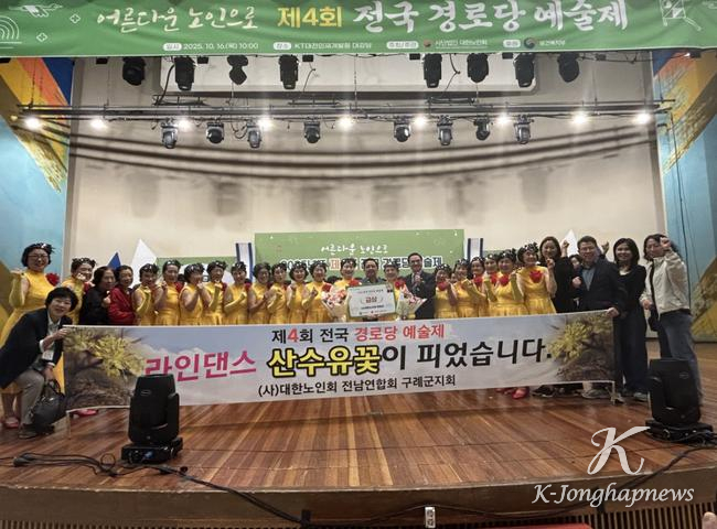 전남 구례군 노인회(라인댄스팀)는 (사)대한노인회가 주관한 2025년 제4회 전국 경로당 예술제에서 전라남도 대표로 참가해 금상을 받았다고 밝혔다.