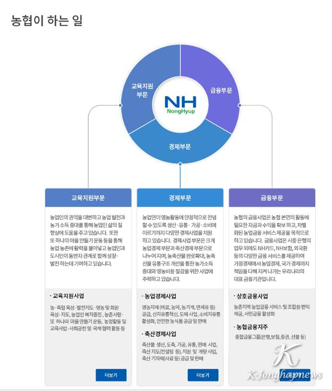 농협은 농민을 위해 생겨난 조직이다. 현재 하는 일은 주로 기업들이 하는 일을 따라하고 있는 수준이다.