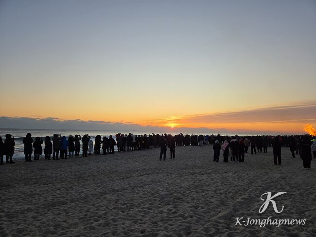 수평선 너머로 떠오른 붉은 해가 푸른 동해를 비추자, 해변과 일출명소에 모인 사람들은 두 손을 모아 새해의 안녕과 희망을 기원했다. 매서운 겨울바람 속에서도 해맞이를 향한 발걸음은 끊이지 않았다.