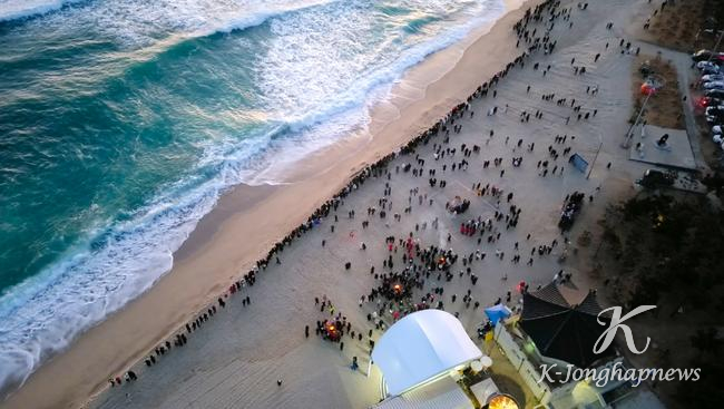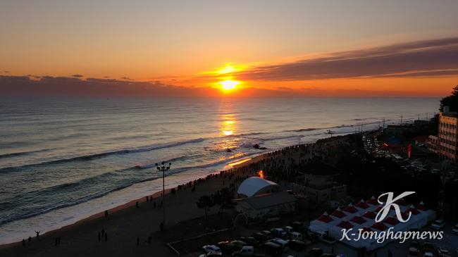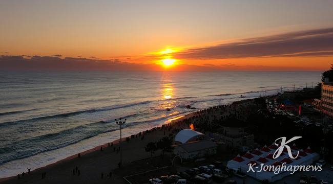 수평선 너머로 떠오른 붉은 해가 푸른 동해를 비추자, 해변과 일출명소에 모인 사람들은 두 손을 모아 새해의 안녕과 희망을 기원했다.