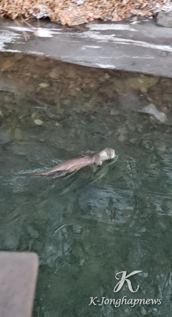 군포시의 대표 휴식처인 반월호수에 멸종위기 야생생물 1급이자 천연기념물인 ‘수달’이 모습을 드러냈다.