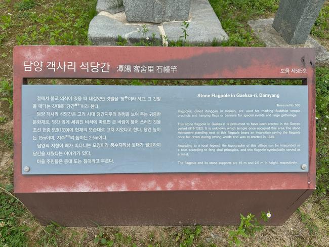 담양군 담양읍 객사리에 자리한 ‘담양 객사리 석당간(石幢竿)’은 고려시대에 처음 세워진 것으로 추정되며, 1969년 보물 제505호로 지정된 귀중한 문화유산이다.
