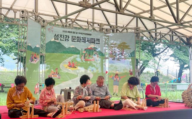 이어 6월 28일 토요일에 진행된 섬진강 문화레저파크는 폭염의 날씨에도 불구하고 가족 단위 참가자들의 발걸음이 이어졌다. 특히 하동의 난정마을에서 오신 어르신들이 선보인 짚신 만들기와 짚공예 체험은 세대와 지역을 아우르는 뜻깊은 문화 교류의 자리가 되었다.