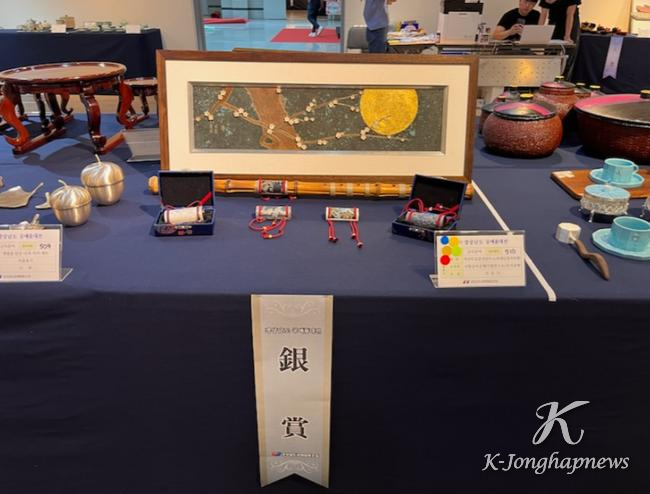 함안군에서는 개인부문에서 금속분야에 출품한 조문기 작가의 ‘천년의 숨결 천년의 소리(대금청가리개)’가 은상을 차지했으며, 종이분야에 출품한 최광순 작가의 작품 ‘한결’이 입선을 수상했다. 수상작들은 지난 5일부터 7일까지 3일간 창원 성산아트홀에서 전시됐다.