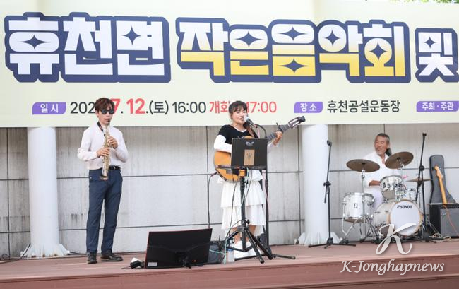 함양군 휴천면 주민자치회는 7월 12일 휴천공설운동장에서 지역 주민 등 200여 명이 참석한 가운데 ‘작은 음악회 및 전시회’를 성황리에 개최했다고 밝혔다.