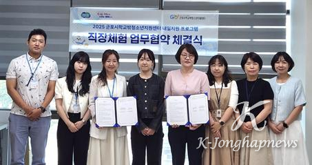 군포시청소년재단(대표이사 김덕희), 군포시학교밖청소년지원센터(센터장 강연미)는 2025년 7월 14일, 학교 밖 청소년의 직장체험 기회를 마련하고자 군포시가족센터와 업무협약을 체결했다고 밝혔다.