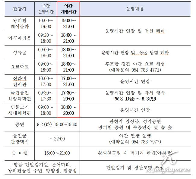 • 왕피천 케이블카·성류굴 등 연장 운영, 호러체험·야간 요트·숨 마켓까지