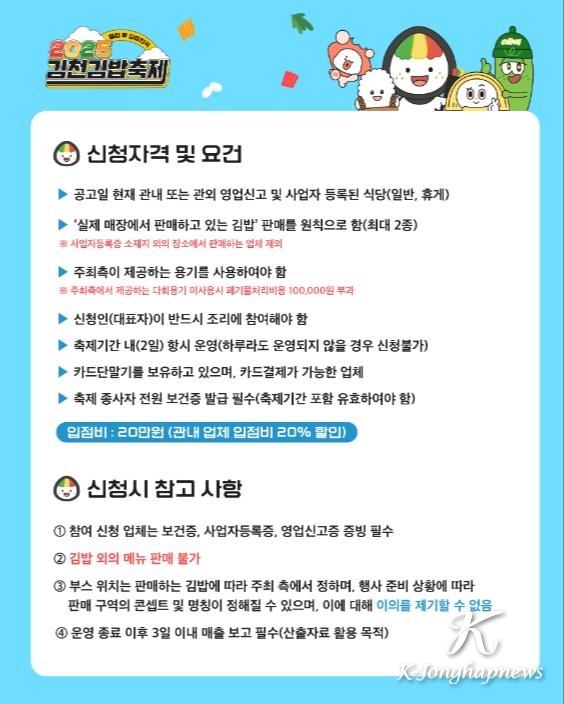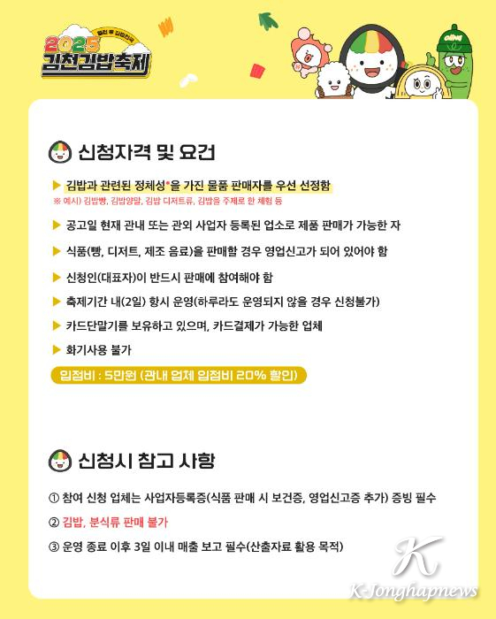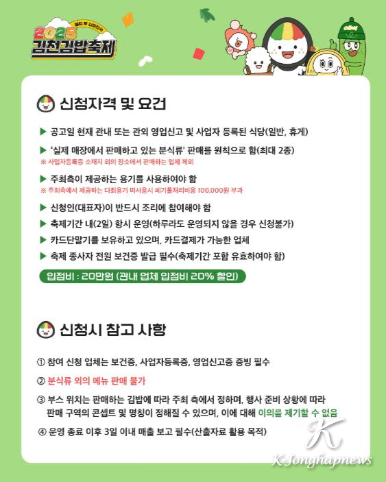김천시, ‘2025 김천김밥축제’ 3개 분야 공고