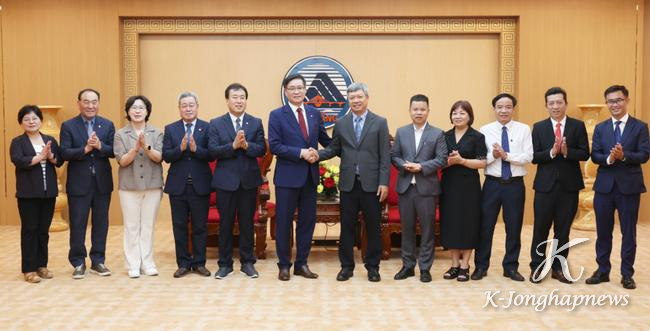 함양군 우호교류대표단은 지난 8월 4일, 베트남 다낭시청에서 다낭시 지도부와 공식 면담을 갖고, ‘코코넛 나무 기념식수 동판’을 전달하며 두 도시 간 본격적인 교류의 시작을 알렸다.