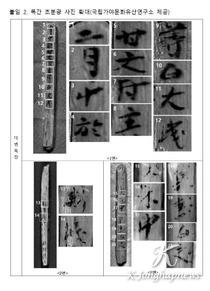 이번에 추가된 목간은 다면 목간 1점과 양면 목간 1점인데 두 점 모두 소나무류로 만들었다. 기존 목간이 출토된 위치와 동일한 점에서 이 목간의 제작 시기 역시 6세기 중반 경으로 추정된다. 다면 목간은 모두 네 면인데, 세 면에 사람에게 처벌을 내린 행정 내용이 담겨있다. 양면 목간은 판독 가능한 글자 수가 적어 전체적인 내용 해석에 한계가 있었다.
