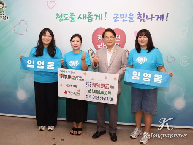 청도군(군수 김하수)은 8월 19일 “청도 경산 영웅시대”에서 함께모아 행복금고에 100만원을 기탁했다고 밝혔다.