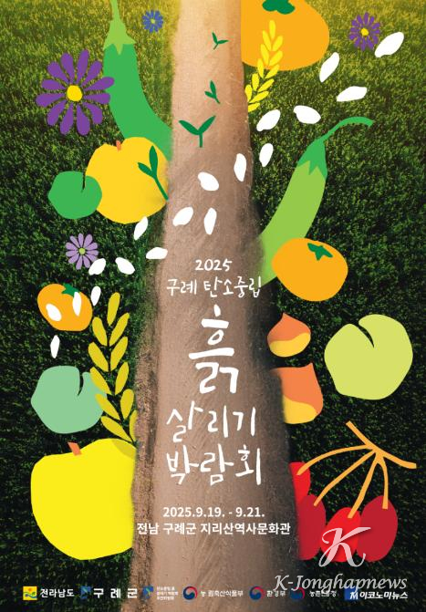전남 구례군은 오는 9월 19일부터 21일까지 3일 동안 지리산역사문화관 일원에서 ‘2025 구례 탄소중립 흙 살리기 박람회’를 개최한다.