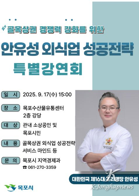목포시는 골목상권의 경쟁력 강화를 위해 ‘대한민국 제16대 조리명장 안유성’을 초청, 특별강연회를 연다.