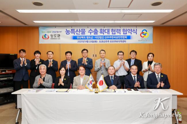 청도군은 이번 협약을 통해 일본 시장 공략을 본격화하고, 향후 다양한 농특산물 수출 품목을 확대해 농업인의 안정적 소득 기반 마련과 지역 경제 활성화에 기여할 계획이다.