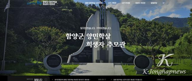함양군은 한국전쟁 전후 억울하게 희생을 당한 함양 양민 희생자들을 온라인으로 추모할 수 있는 『함양군 양민학살 희생자 추모관』을 22일 개설했다고 밝혔다.
