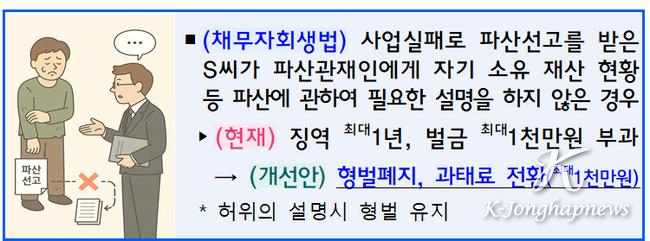 (채무자회생법) 채무자 등 설명의무 있는 자가 정당한 사유없이 파산에 필요한 설명을 하지 않은 경우 現징역 최대1년·벌금 최대1천만원→改과태료 최대1천만원