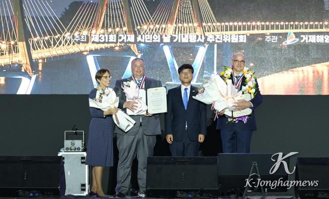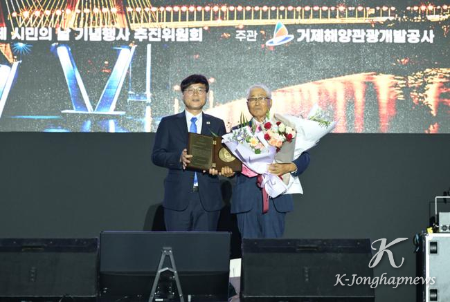 저녁 시간 열린 기념식에서는 시민의 날을 맞아 거제시민상과 명예시민상 시상식이 진행됐다. 시민상은 산업경제 지역개발 부문 이정태 대일수산(주) 대표이사가 수상했으며, 명예시민상은 콘스탄틴 루시안 코르니츅(Constantin Lucian Corniciuc), 라이트 주니어 제임스 유진(Wright JR James Eugene)이 수상했다.