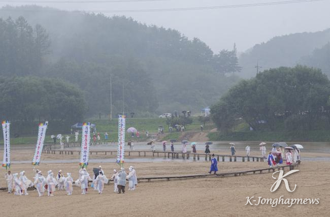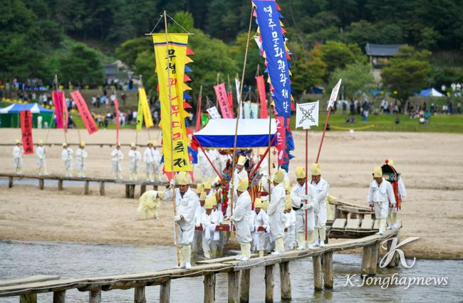 첫날 개막식에서는 외나무다리 퍼포먼스와 전통혼례가 무대에 올랐고, 경전성독 합동공연과 무섬 놀음 한마당 등 다양한 공연이 펼쳐져 축제의 서막을 화려하게 열었다.