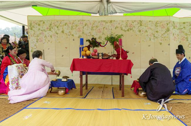 무섬마을 사람들이 전통혼례를 치루고 있다.