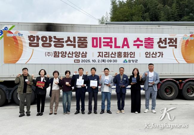 함양군은 2일 안의면에서 김윤택 함양군의회 의장을 비롯해 수출 관계자 15명이 참석한 가운데 ‘함양 농식품 미국 LA 수출 선적식’을 개최했다.