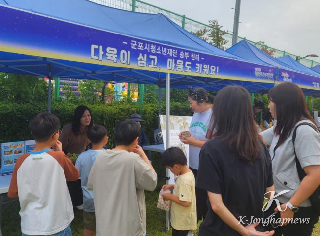 군포시청소년재단(대표: 김덕희) 산하 군포시청소년지역센터 송부틴터는 지난 9월 27일(토) 부곡 고랑치기 근린공원에서 열린 ‘제3회 송부동 빛나는 달빛축제’에 참여해 ‘다육이 심기 체험부스’를 운영하며 지역 주민들의 큰 호응을 얻었다.