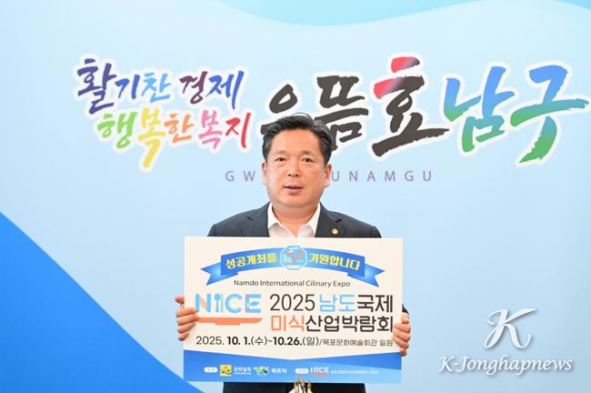 김병내 광주 남구청장은 10월 한달여간 목포에서 열리고 있는 ‘2025 남도국제미식산업박람회’의 성공 기원을 위한 인증 챌린지에 동참했다.
