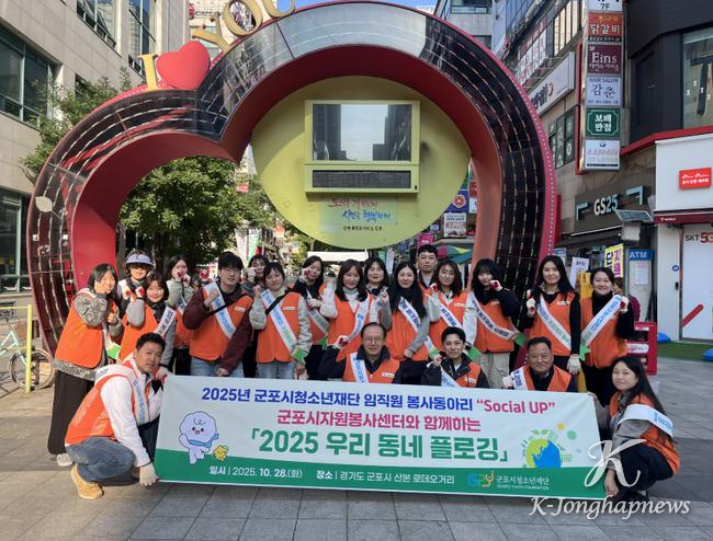 군포시청소년재단(대표이사 김덕희)은 지난 10월 28일(화), 재단 임직원봉사단 30여 명이 참여한 가운데 군포시자원봉사센터와 함께 ‘2025 우리동네 플로깅’ 봉사활동을 성공적으로 진행했다고 밝혔다.
