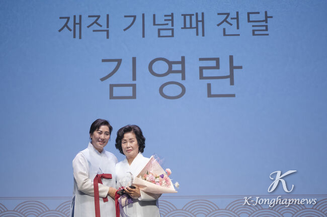 취임한 최후남 회장(왼쪽)과 이임한 김영란 회장.