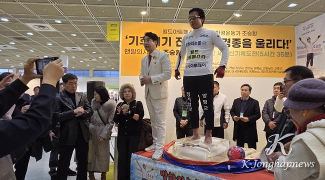 광양시는 광양시 홍보대사인 조승환 씨가 지난 24일 서울 코엑스에서 열린 ‘월드아트페스타’ 개막식에서 ‘얼음 위에 맨발로 오래 서 있기’ 세계 신기록을 경신했다고 밝혔다.