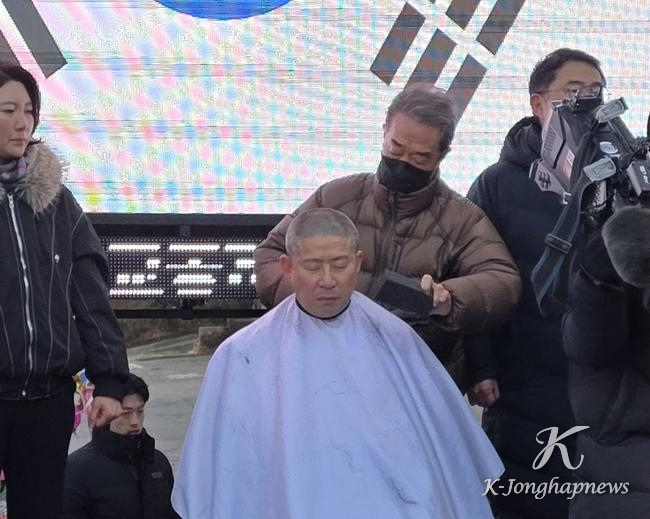 삭발하고 있는 최기식 국민의힘 의왕·과천 당협위원장