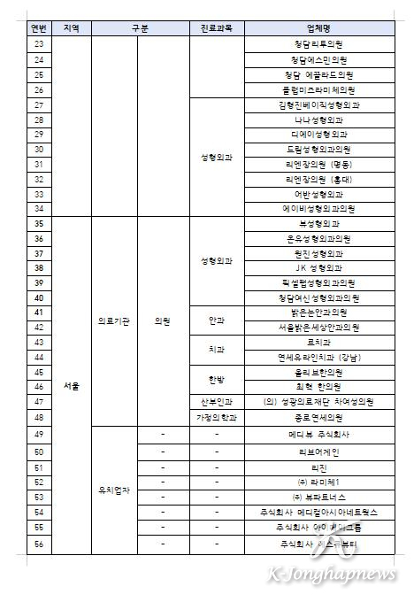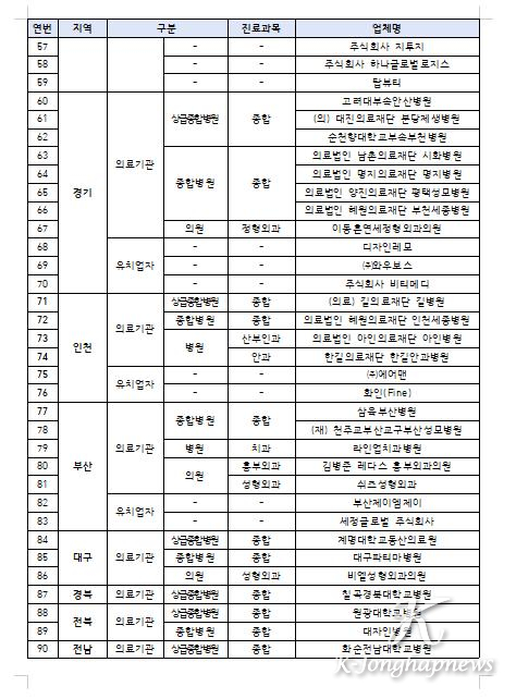 ※ 올해에는 ‘치과’와 ‘한의원’을 새롭게 지정