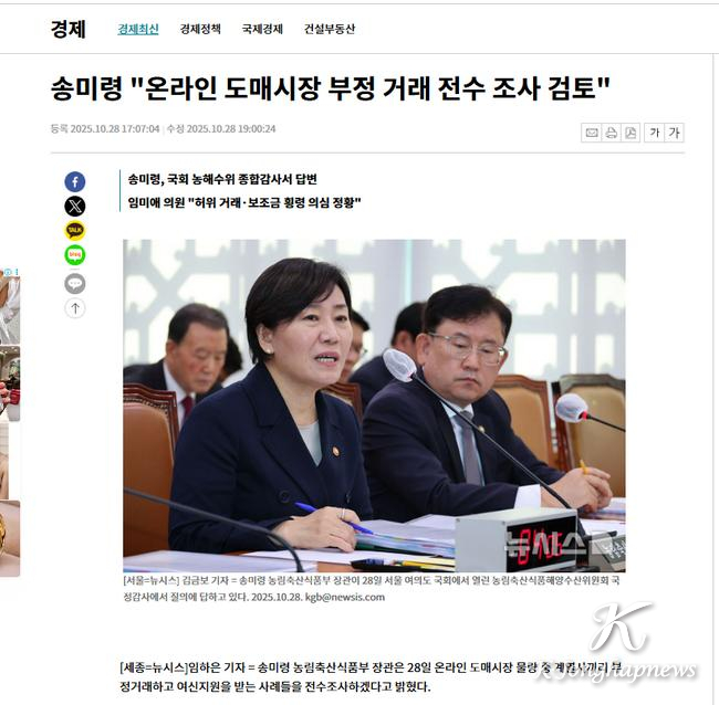 *[뉴시스] 송미령 "온라인 도매시장 부정 거래 전수 조사 검토“