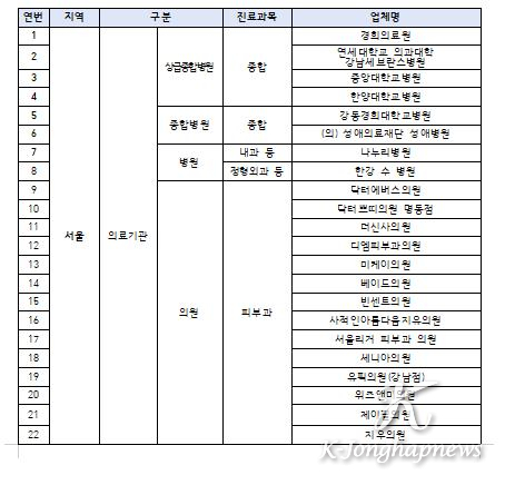 ※ 올해에는 ‘치과’와 ‘한의원’을 새롭게 지정